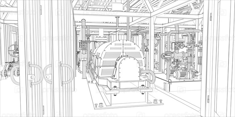 Промышленное оборудование. каркас, 3d визуализация