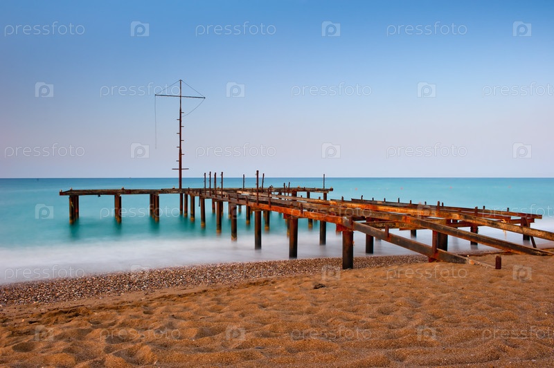 Ржавый каркас старого пирса и бирюзовое море