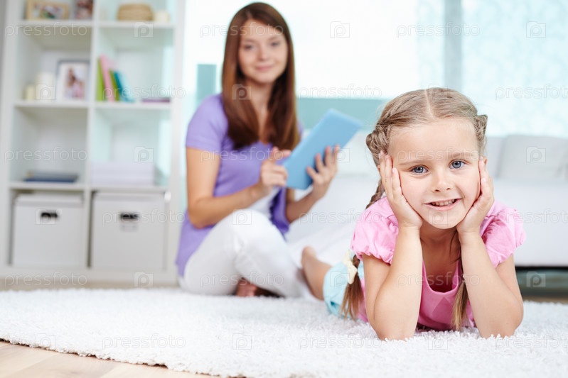 Девочка лежит на ковре