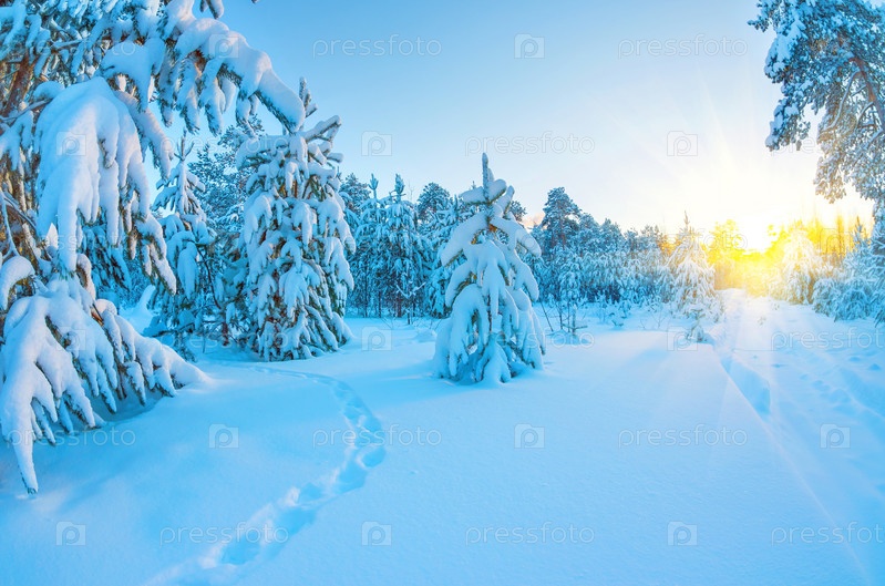 Закат в зимнем лесу