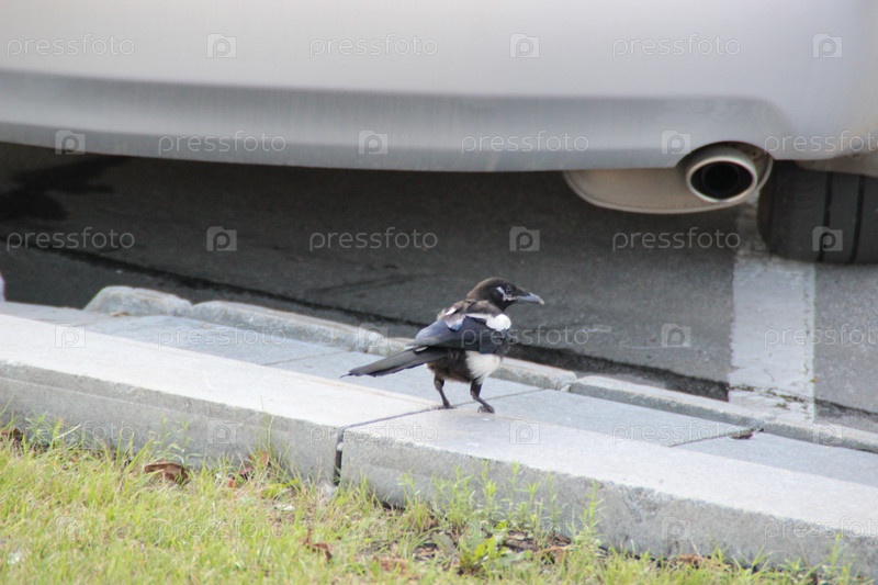 Сорока возле машины