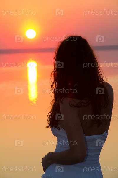 Девушка созерцает рассвет над озером