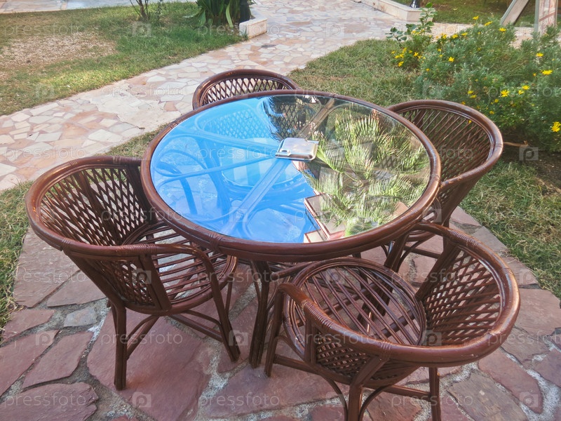 Плетеные стулья и стол на улице
