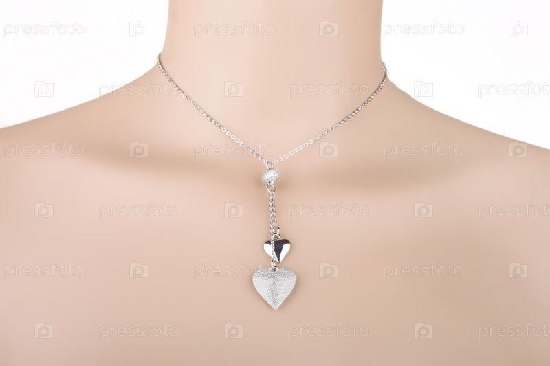 Серебряное ожерелье с двумя подвесками в форме сердца на манекене