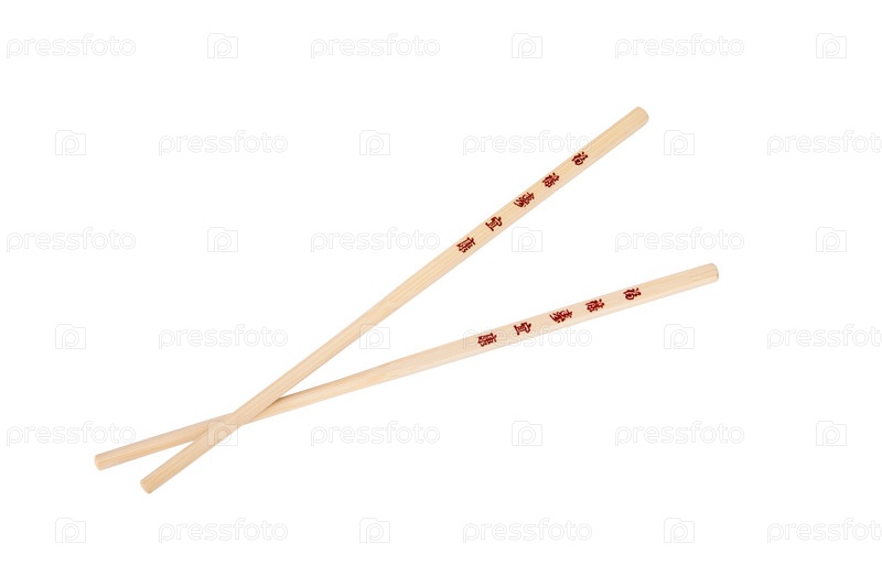Скрещенные палочки с китайской/японской символикой, изолированные на белом