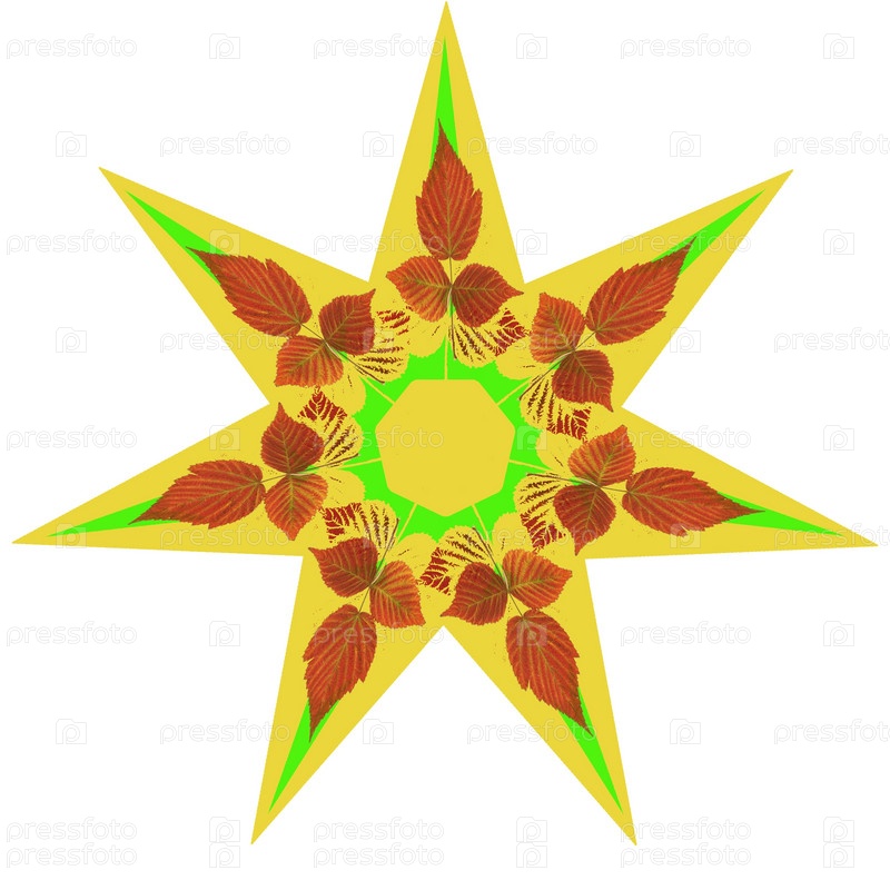 Декоративная семиконечная звезда с листьями на белом фоне