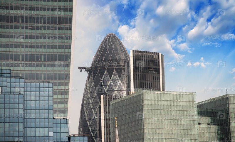 Красивые современные небоскребы на закате, Лондон, Великобритания