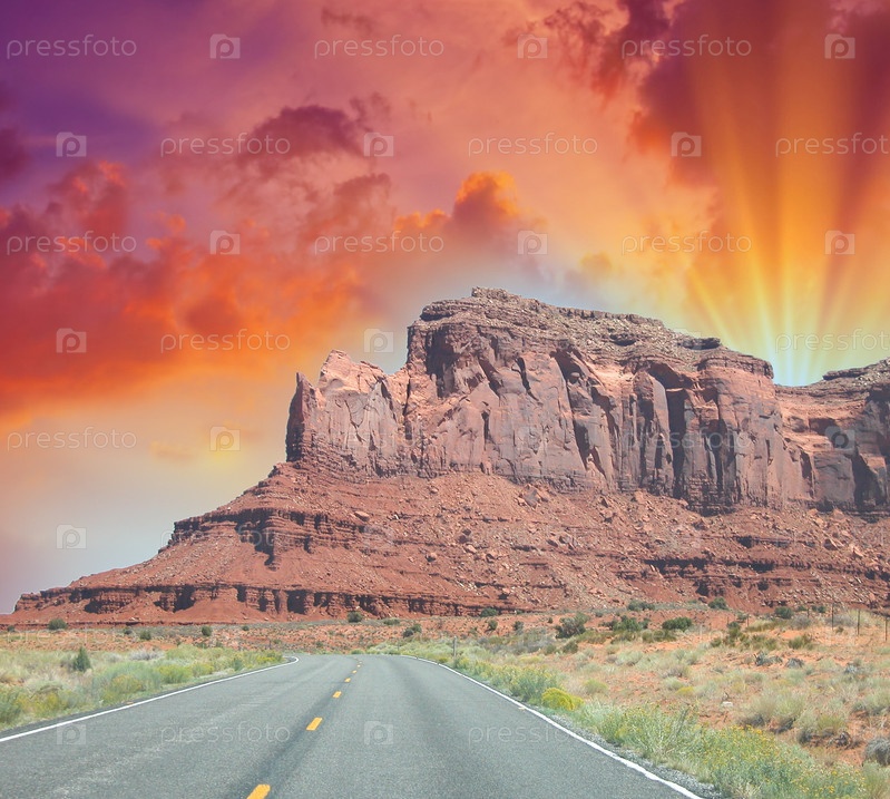 Дорога и горы на закате, США