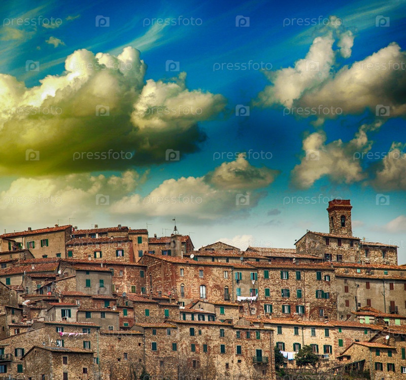 Красивый закат в средневековой деревне Сан-Джиминьяно - Тоскана, Италия
