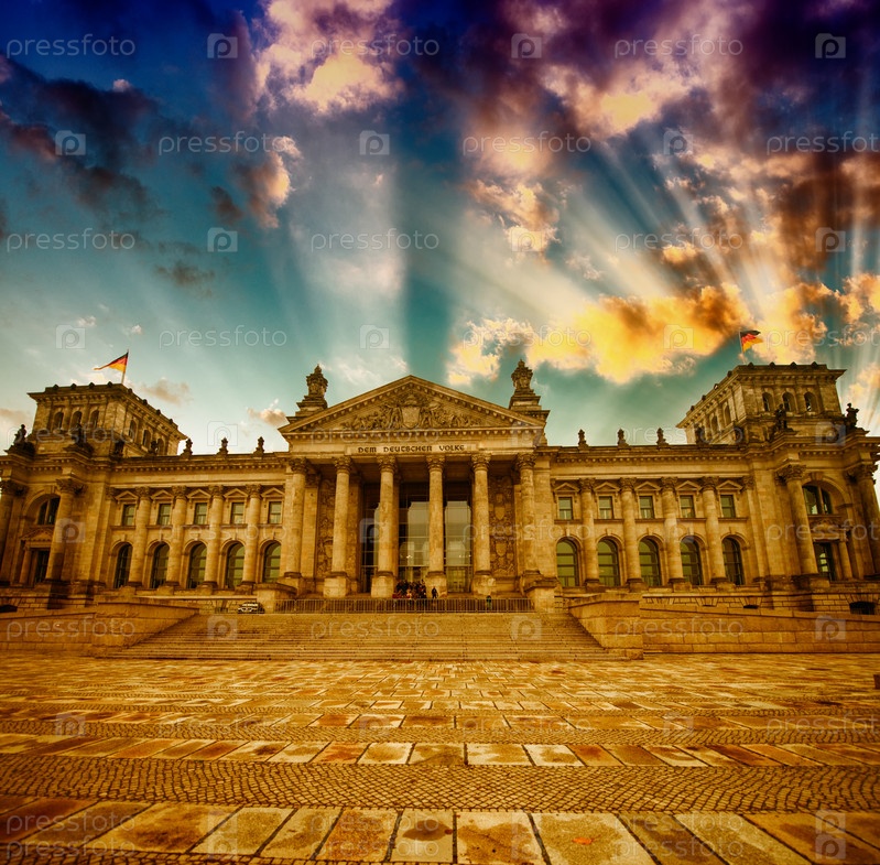 Здание Рейхстага на площади Республики в Берлине в зимний день
