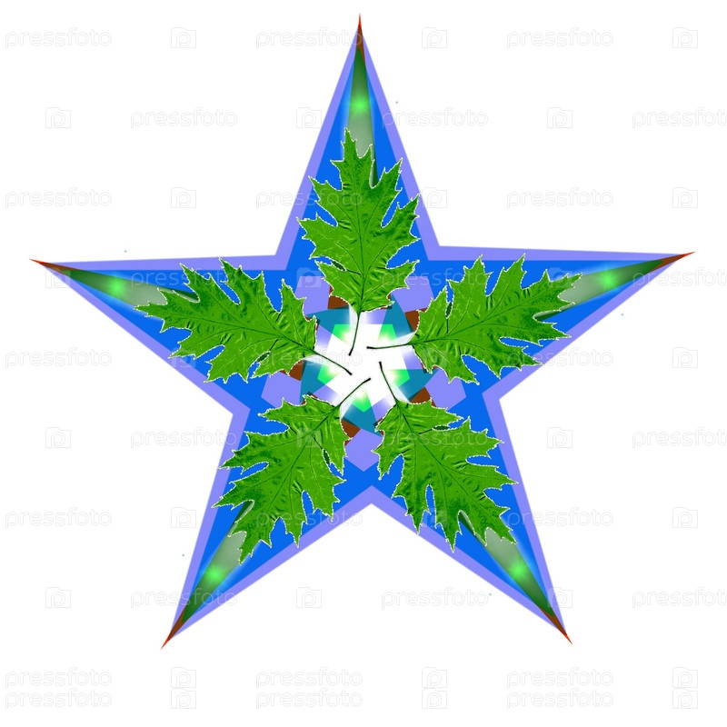 Декоративная звезда с листьями на белом фоне