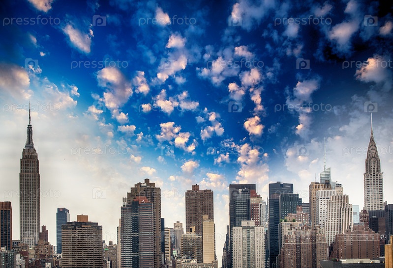 Красивый закат, Манхеттен, Нью-Йорк