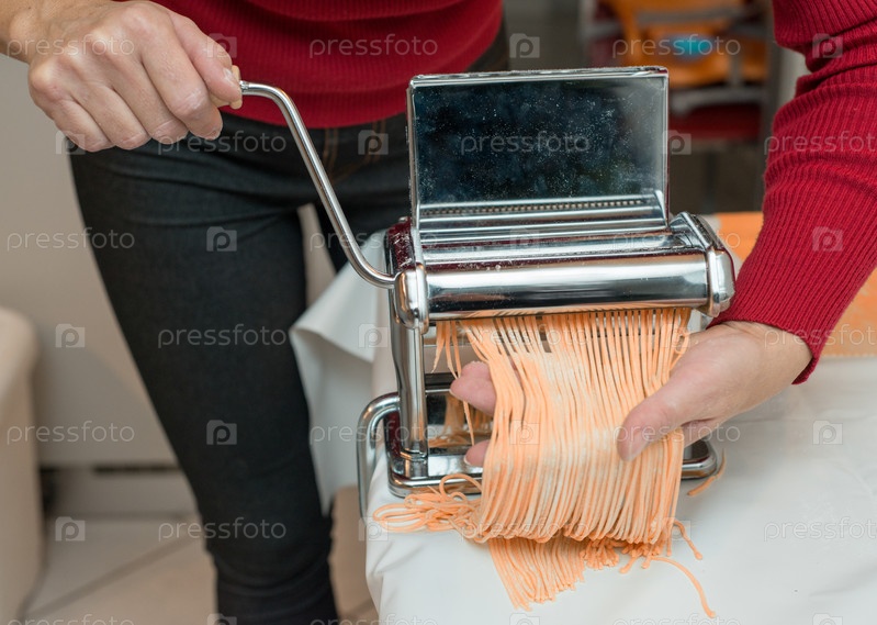 Шеф-повар делает простую домашнюю лапшу на машинке