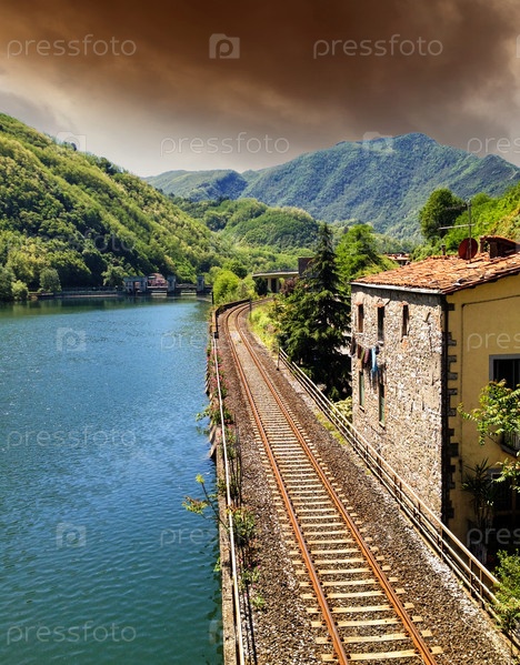 Железная дорога, река, небо в Тоскане