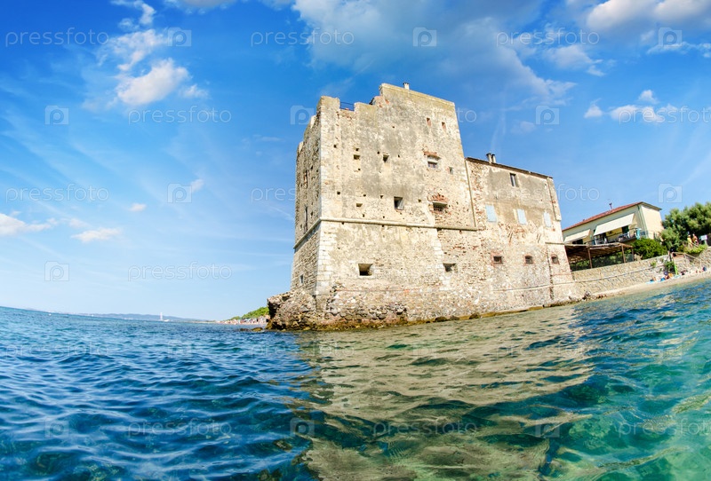 Древняя башня над океаном, вид с воды