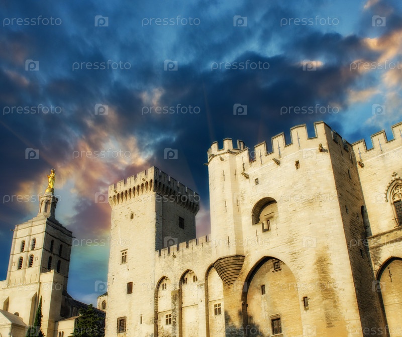 Дворец Пап в Авиньоне на закате в Южной Франции