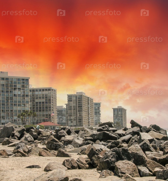 Здания на скалистом берегу в Сан-Диего, Калифорния