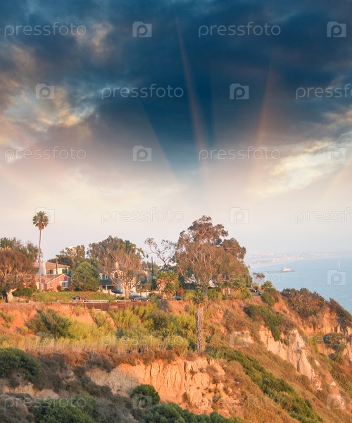 Красивый закат на побережье в Лос-Анджелесе, Калифорния