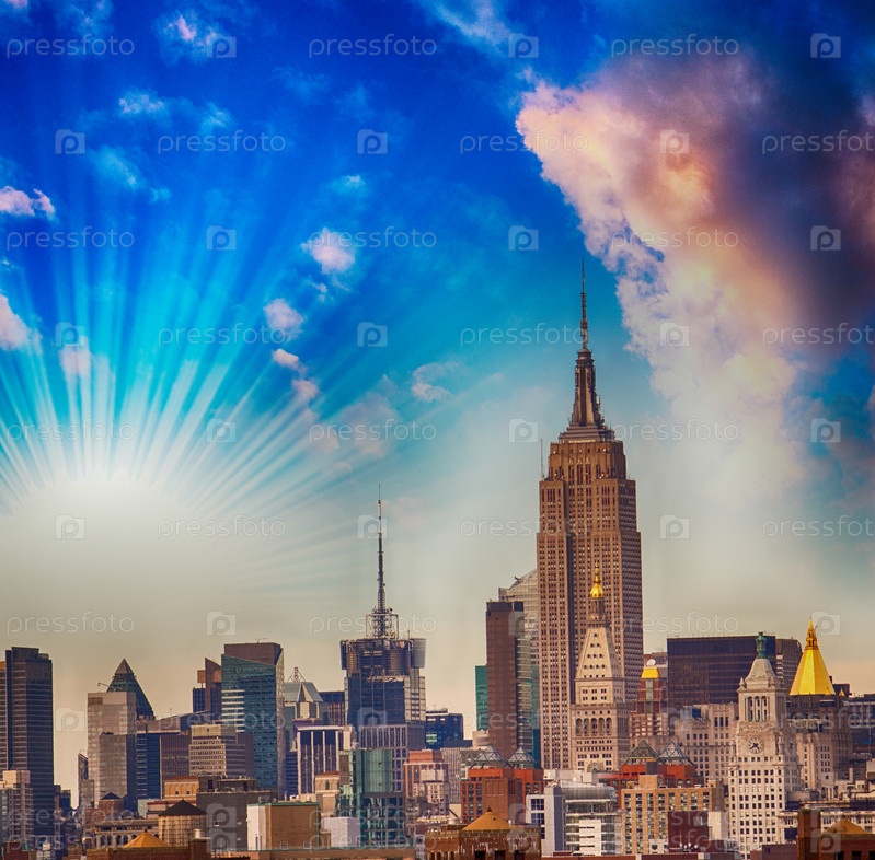 Нью-Йорк. Небоскребы Манхэттена на закате