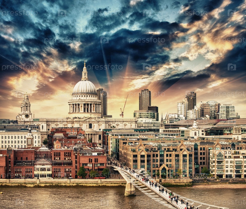 Лондон. Мост Тысячелетия и собор Святого Павла на закате