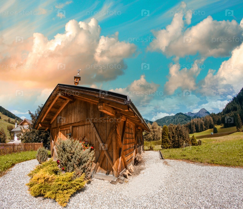 Красивая хижина и горный пейзаж