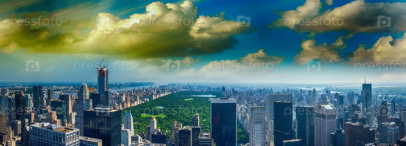 Панорамный вид с воздуха на Центральный парк и окружающие здания - Манхэттен, Нью-Йорк