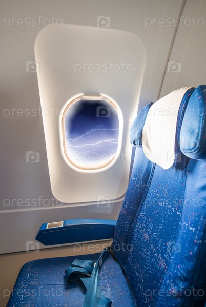 Гроза во время полета. Вид из иллюминатора
