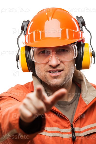 Инженер или рабочий в каске, изолированный