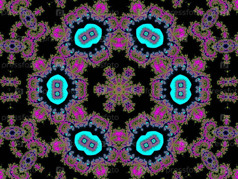 Фрактальный декоративный орнамент на черном фоне