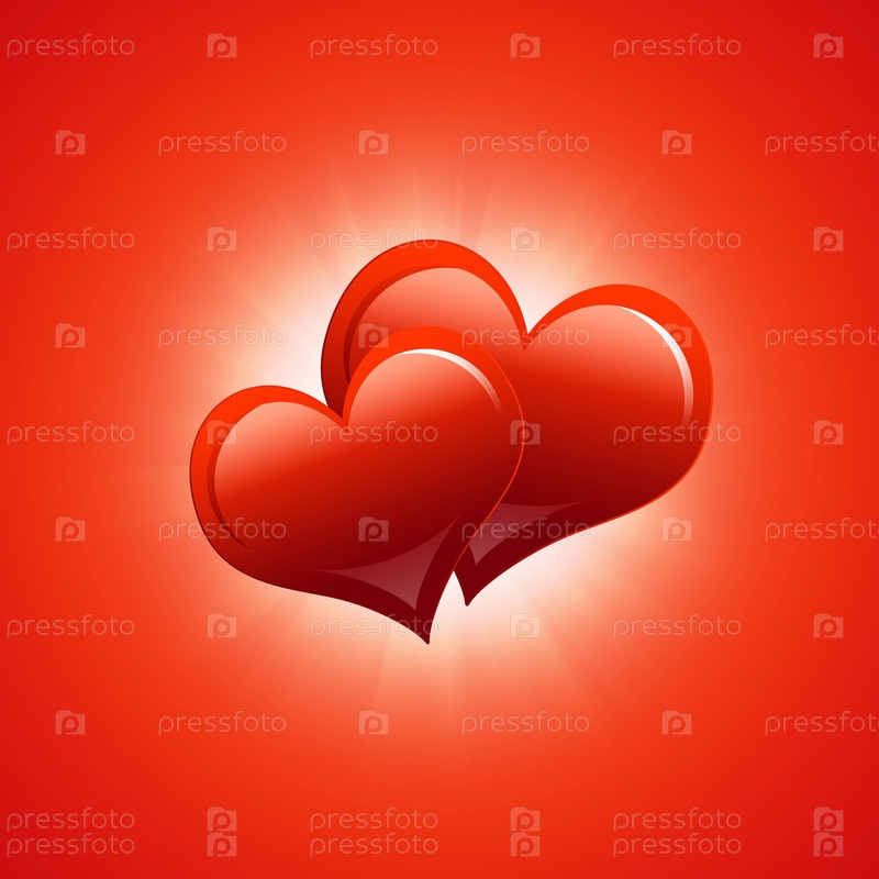 Два красных сердца. Абстрактный фон