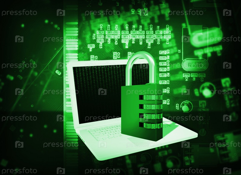 Ноутбук и код блокировки на абстрактном фоне
