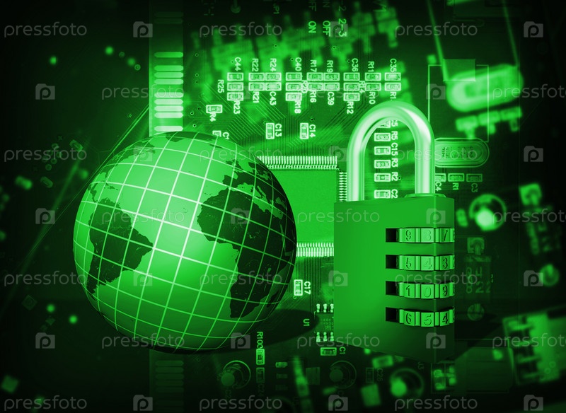 Футуристические микросхемы, кодовый замок и глобус