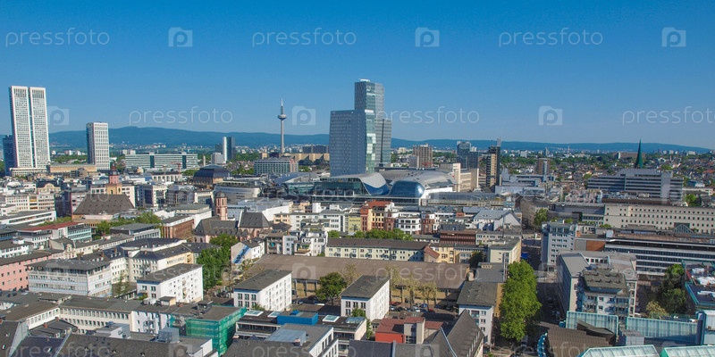Панорама города Франкфурт-на-Майне в Германии с воздуха