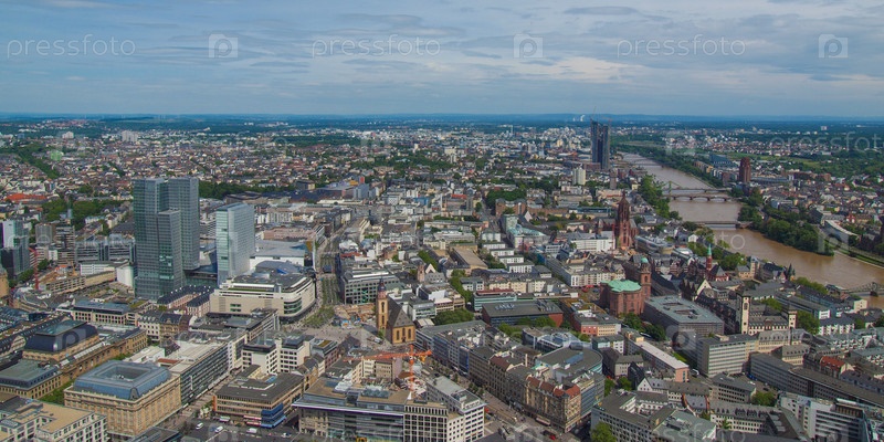Панорама города Франкфурт-на-Майне в Германии с воздуха