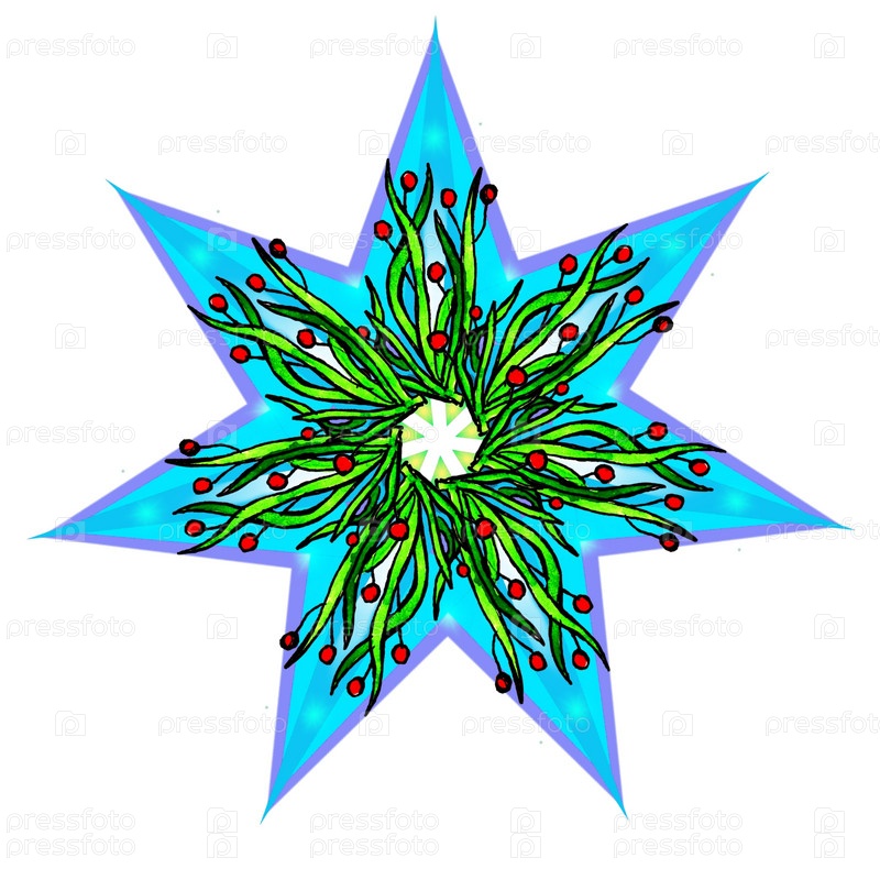 Декоративная звезда с листьями и ягодами на белом фоне