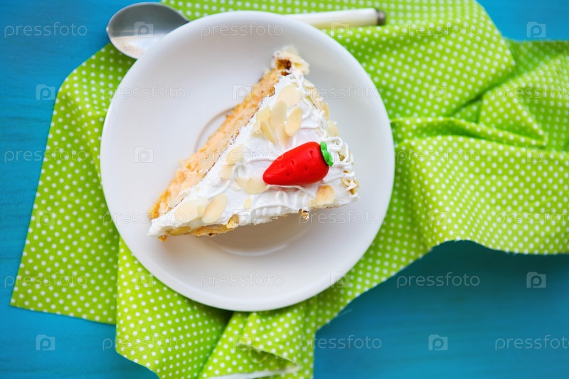 Кусок морковного торта с глазурью