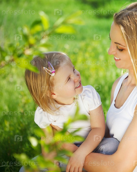 Счастливая мать и ее маленькая дочь весной
