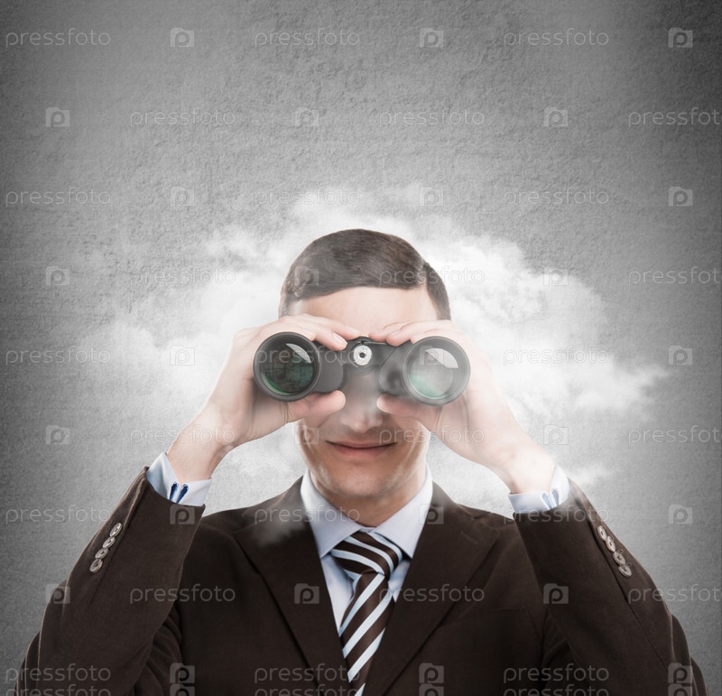 Молодой бизнесмен смотрит в бинокль