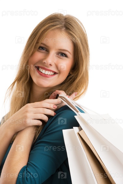 Девушка с пакетами белом фоне