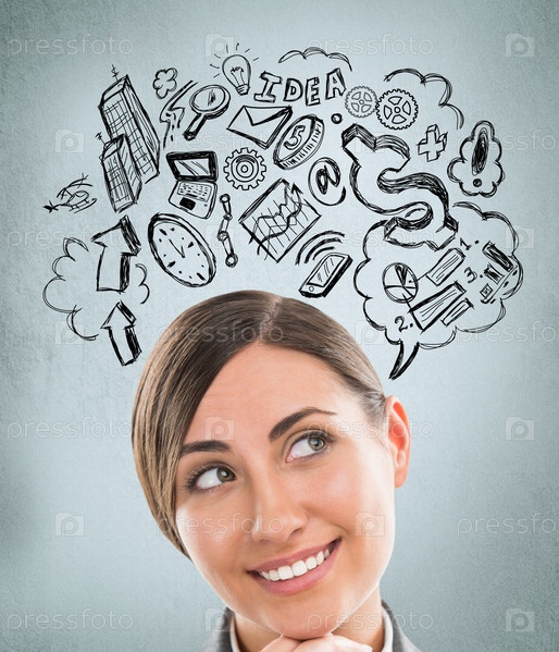 Молодая красивая женщина думает о планах