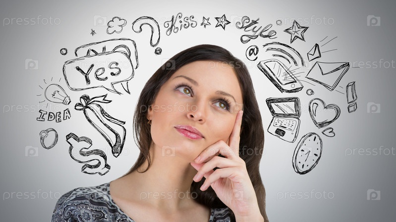 Молодая красивая женщина думает о планах
