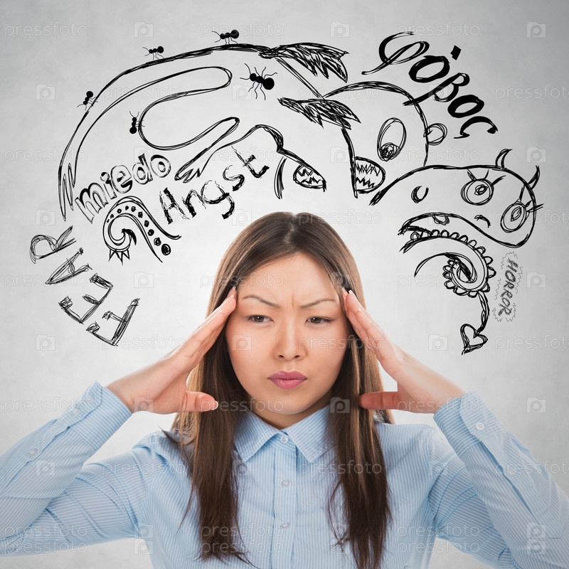 Молодая бизнес-леди думает о своих страхах