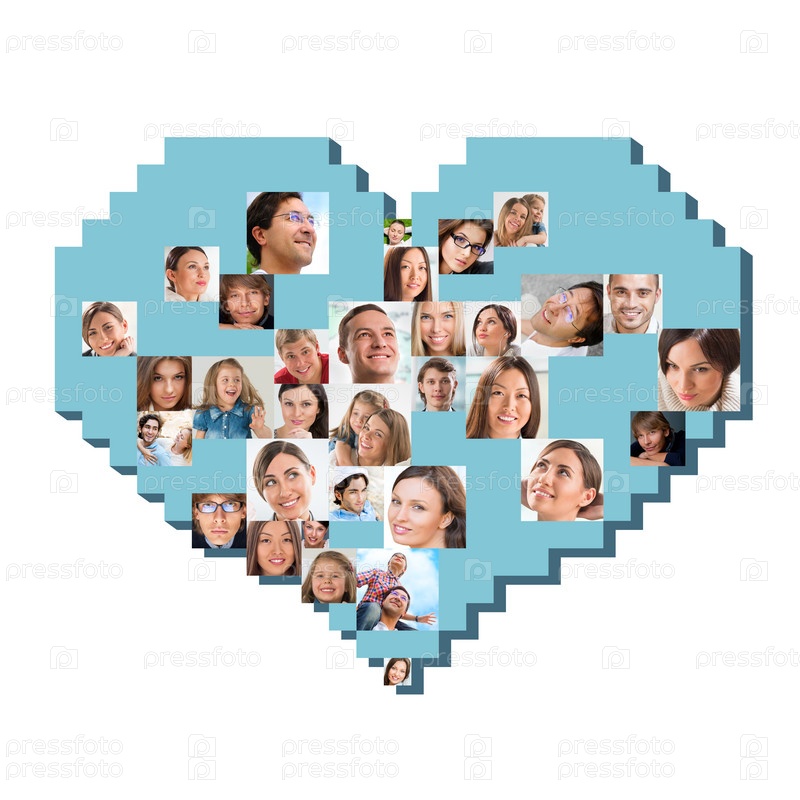 Коллекция портретов разных людей в форме сердца