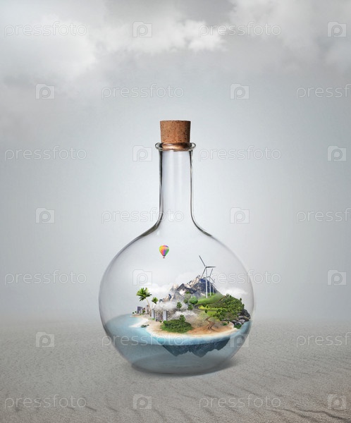 Закупоренная бутылка с красивым островом