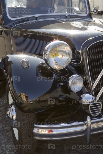 Передняя часть черного ретроавтомобиля