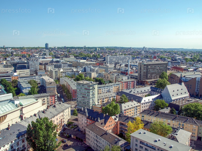 Вид с воздуха на Франкфурт-на-Майне в Германии