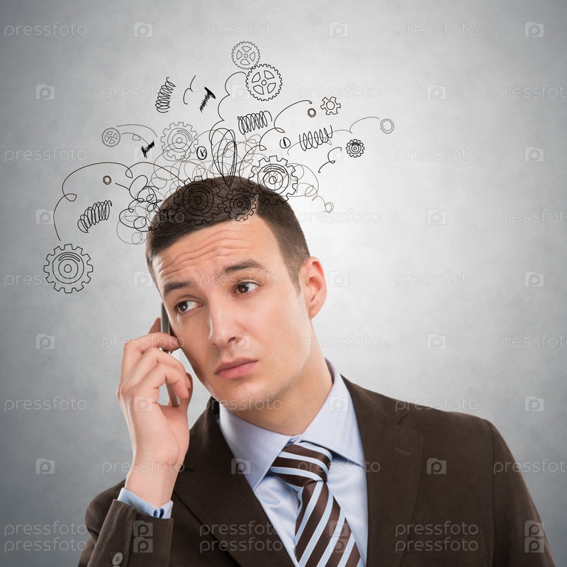 Концепция стресса с бизнесменом, звонящим по телефону