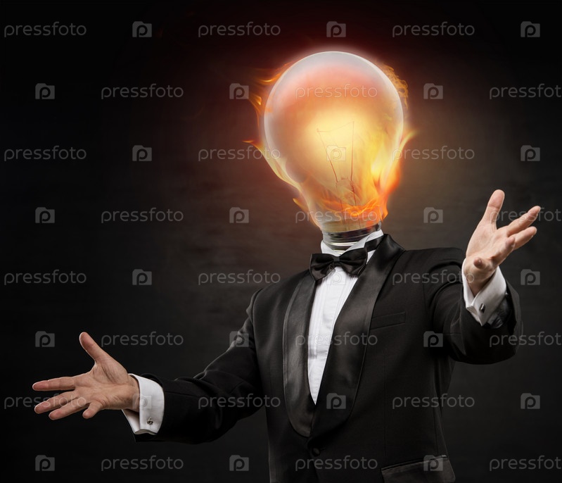 Мужчина с горящей лампой вместо головы