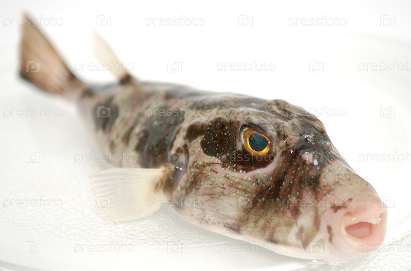 Хищная рыба с зубами на прозрачной тарелке