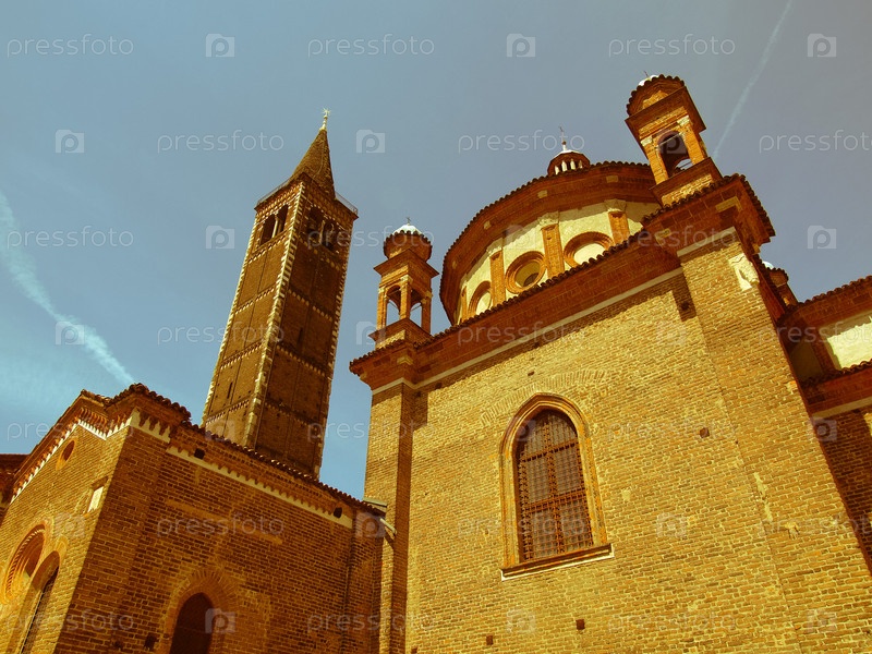 Винтажный вид базилики Сант Эусторджо, Милан, Италия